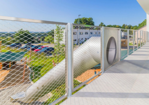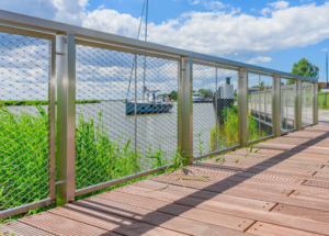 Webnet is a wire mesh fabricated out of woven stainless steel strands. It is weather resistant, extremely robust and requires virtually no maintenance. Webnet is suitable for interior and exterior applications. Usually installed between openings in structural railings in stairways, it provides stability and clear guidance. On facades, it can serve as a support or trellis for climbing and twining plants or provide accents as dividing elements in large spaces. A great advantage of WebNet is its  robust strength  but delicate appearance, especially in zoo enclosures or as protective nets,  where it’s visibility is minimal.