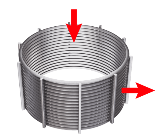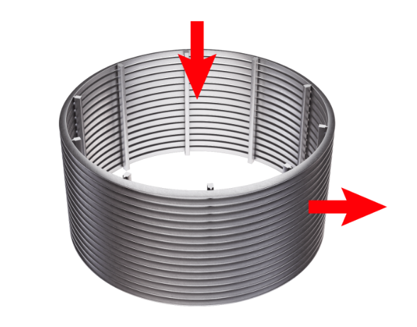- For surface filtration, the V-shaped surface wires allow for easy cleaning by mechanical scraping or backwashing